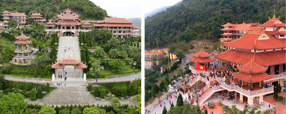 Although it was only inaugurated in 2009, with its back against the mountain and facing the sea, Truc Lam Giac Tam Zen Monastery (also known as Cai Bau Pagoda) in Van Don attracts a large number of tourists from all over.