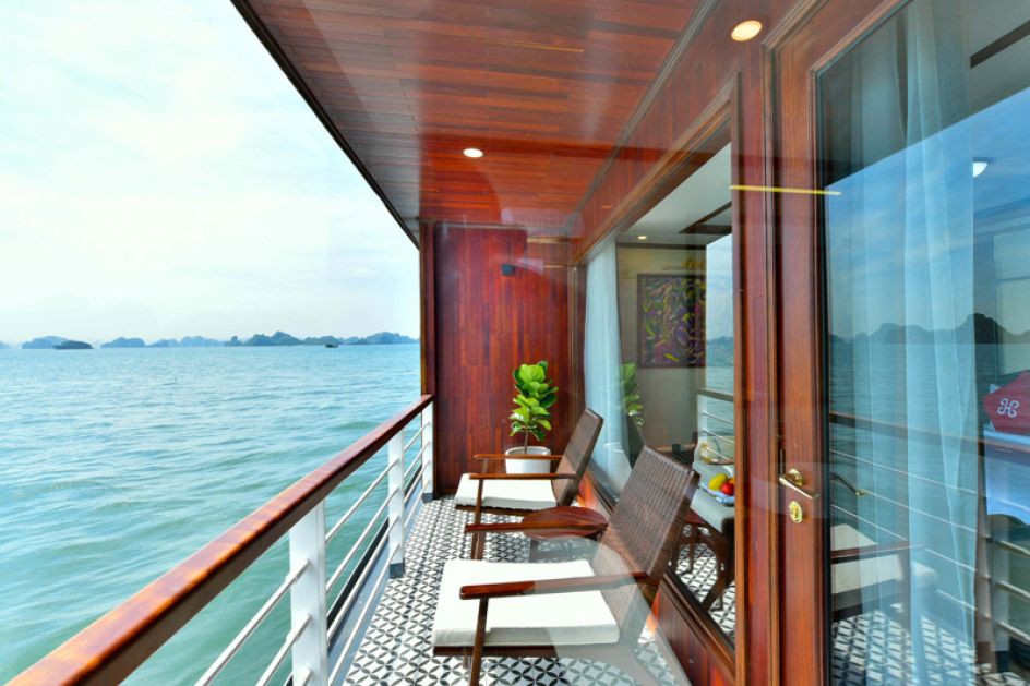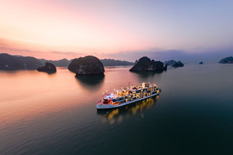 17:30: Regreso a Heritage Cruises, disfrute de la vida a bordo del barco o en su suite, y con un cóctel en la mano observe la puesta de sol sobre el Golfo de Tonkin.